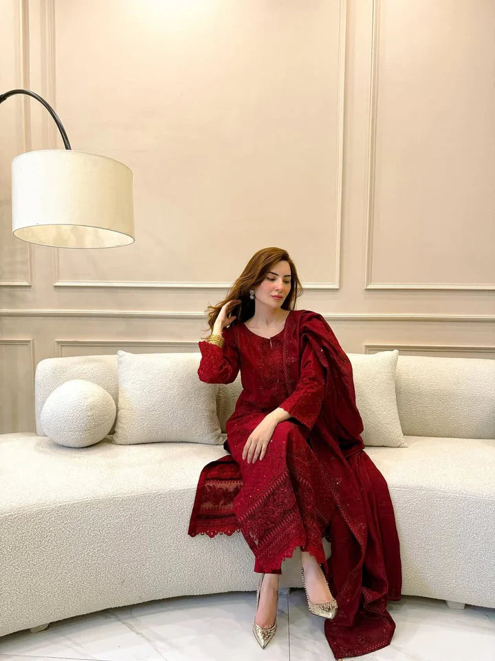 Package Includes: 3 Piece - (Top Bottom & Dupatta )